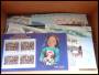 Kasse med FDCere, Juleark og18 styk souvenir/årsmapper, samt cigaræske med løsmærker/miniark.
