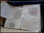Stort parti i flyttekasse med kartotek, miniark og sammentryk mv. Meget materiale.